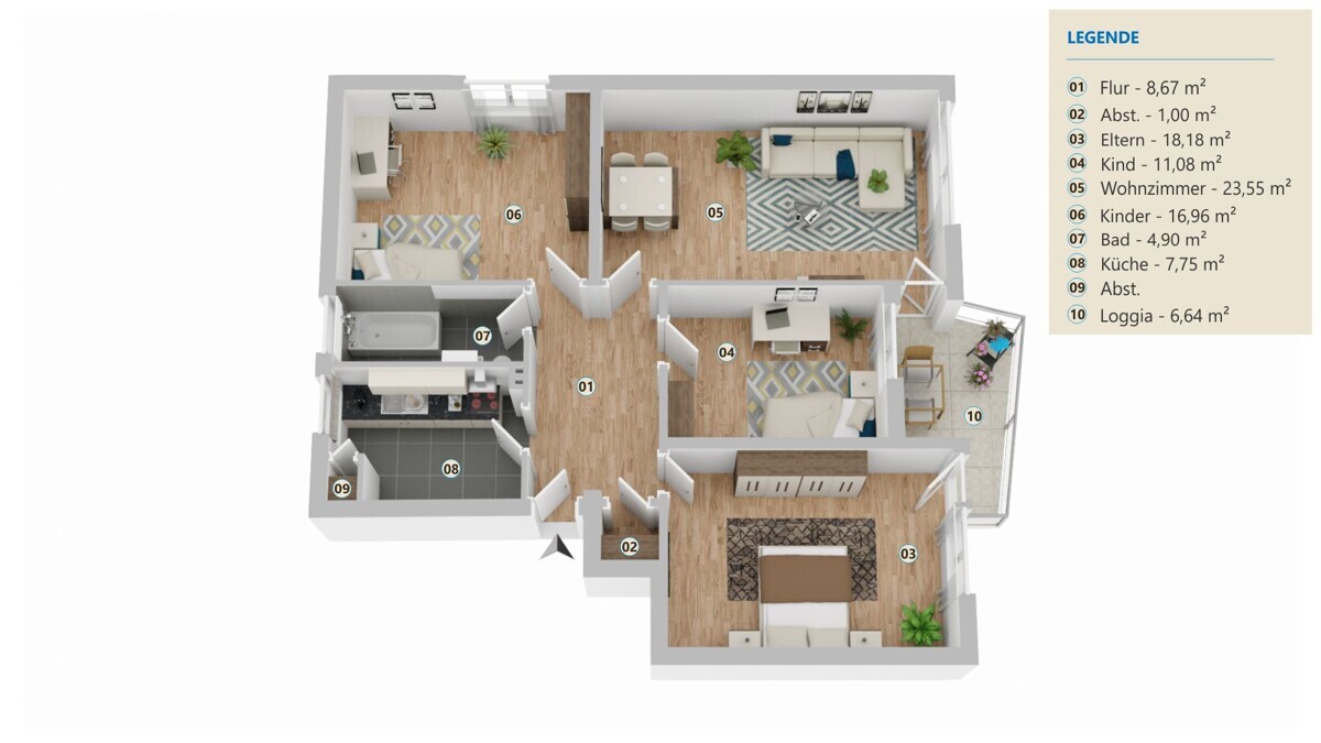 Diese gepflegte 4-Zimmer-Wohnung mit ca. 95 m² Wohnfläche bietet einen durchdachten Grundriss, der sich ideal für für Selbstnutzer, eine WG oder zur klassischen Vermietung eignet.