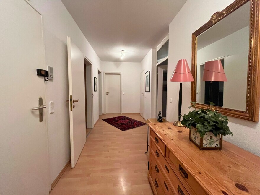 Die Wohnung bietet ca. 105 m² Wohnfläche, verteilt auf ein Wohn- und Esszimmer, zwei weitere Zimmer sowie eine separate Küche. Die moderne Einbauküche sowie das Duschbad mit Tageslicht, Duschkabine, Unter- und Oberschrank und Waschmaschinenanschluss wurden 2005 renoviert bzw. modernisiert.