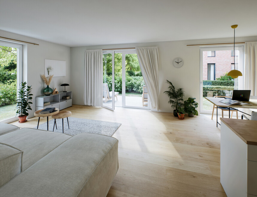 Exklusiv im Eichenquartier gelegen, verbindet dieses Wohnensemble urbanen Komfort mit naturnaher Ruhe. Direkt am renommierten Einkaufszentrum Dodenhof genießen Sie höchste Infrastruktur, feine Gastronomie und kurze Wege zu allen Annehmlichkeiten. Gleichzeitig umrahmen majestätische Eichen und grüne Freiflächen das Quartier und schaffen ein Refugium voller Privatsphäre und Lebensqualität.