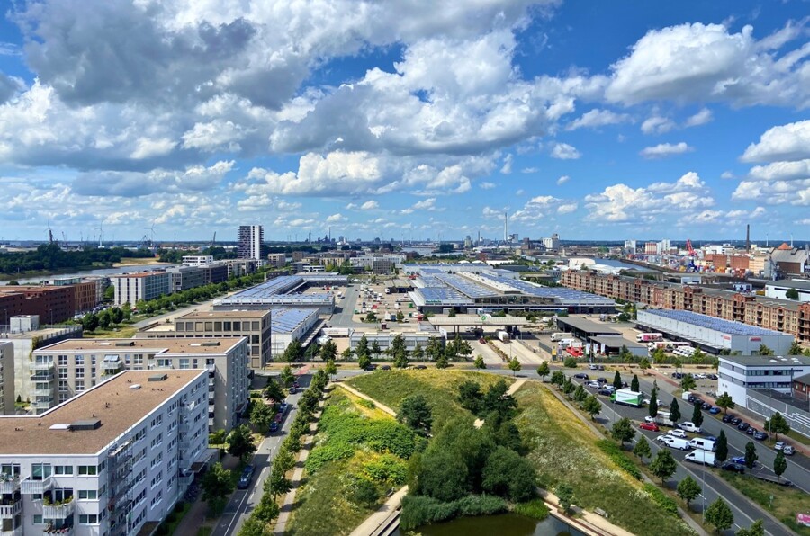 Das Hafenhochhaus in der Hafenstraße 55 befindet sich im Herzen der lebendigen Überseestadt Bremen. Die gute Anbindung an das ÖPNV-Netz, aufwendig gestaltete Grünzonen, zahlreiche PKW Stellplätze direkt vor dem Gebäude und nicht zuletzt der fantastische Rundumblick auf Häfen und Weser machen das revitalisierte und vollständig sanierte Hafenhochhaus zu einem einmaligen Standort in Bremen.